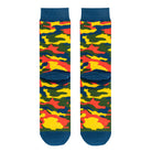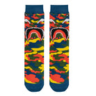 Hide in plain sight and evade the enemy in these warplane rugby camouflage print socks. These crew socks feature a blue, red, yellow and green army fatigue pattern with a monstrous face. Made with 100% premium cotton and a double layered cotton bottom for enhanced comfortability and cushion.